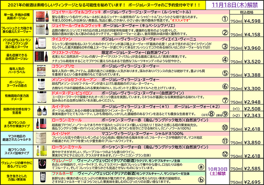 2021ボージョレ・ヌーヴォご予約承り中!!
